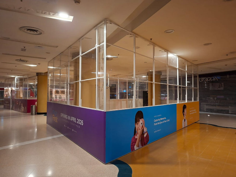 Hoarding, visual and transparent plastic sheet installation at Sunway Pyramid for My First. 28 February 2026. #hoarding #visual #transparent #plasticsheet #sunwaypyramid #myfirst